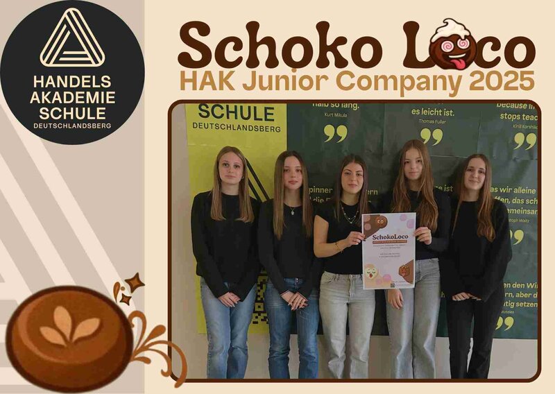 Marketing-Vortrag Im Rahmen des Ausbildungsschwerpunkts Marketing erhielten die Schüler:innen der 3ABK praxisnahe Einblicke von Frau Mag. Sylvia Glockengießer, die seit… Weiterlesen Der frühere Caritas-Präsident Franz Küberl zu Besuch In der 5AK war Franz Küberl, früher das Gesicht der österreichischen Caritas, zu Gast. Weiterlesen Junior Company SchokoLoco Fünf Schülerinnen der BHAK Deutschlandsberg starten mit außergewöhnlichen Pralinen durch. Weiterlesen Schülerunternehmen startet durch: Proteinreiche ProtiBox stärkt den Schultag! Junge Unternehmer verkaufen „ProtiBoxen“ an der Handelsakademie in Deutschlands-berg, um den Schülern einen gesunden und proteinreichen Schultag zu… Weiterlesen Ausbildungsschwerpunkt Marketing im MischMasch Am 2. Dezember 2025 besuchte der Ausbildungsschwerpunkt 'Marketing' das MischMasch in Deutschlandsberg. Weiterlesen Willkommen an der BHAK/BHAS Deutschlandsberg Im Dezember durften wir eine weitere italienische Schulklasse (aus Bergamo) mit Unterstützung von Erasmus+ bei uns begrüßen. Weiterlesen Teamarbeit mit dem Fröbelturm Die Peers der 2AS, Muhittin, Ahmad, Christin und Lennox führten mit der 1AS eine Übung zur Teamarbeit durch, nämlich den Fröbelturm. Weiterlesen Junior Company ReTea – Brew · Reuse · Repeat Unsere Unternehmensidee: Nachhaltigkeit und bewusster Teegenuss sollen Hand in Hand gehen. Wir bieten unseren Kunden:innen zwei Produktbereiche: Weiterlesen Mehr News anzeigen weiter zum Newsarchiv