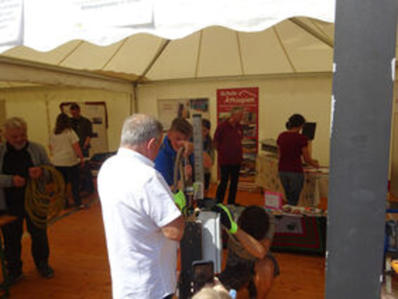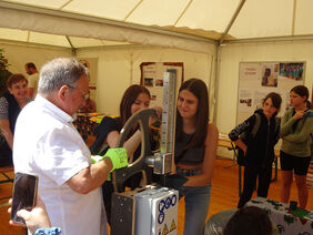 Bei einem interessanten Kunststoff-Recycling-Projekt durften Christoph, Clara und Kathi mithelfen: aus Hartplastik-Teilen wurden praktische Gegenstände wie Lineale oder Wäscheklammern gepresst.