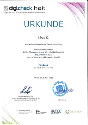 16 Schüler:innen der 4AK haben im Sommersemester 2023 am digi.check hak teilgenommen.