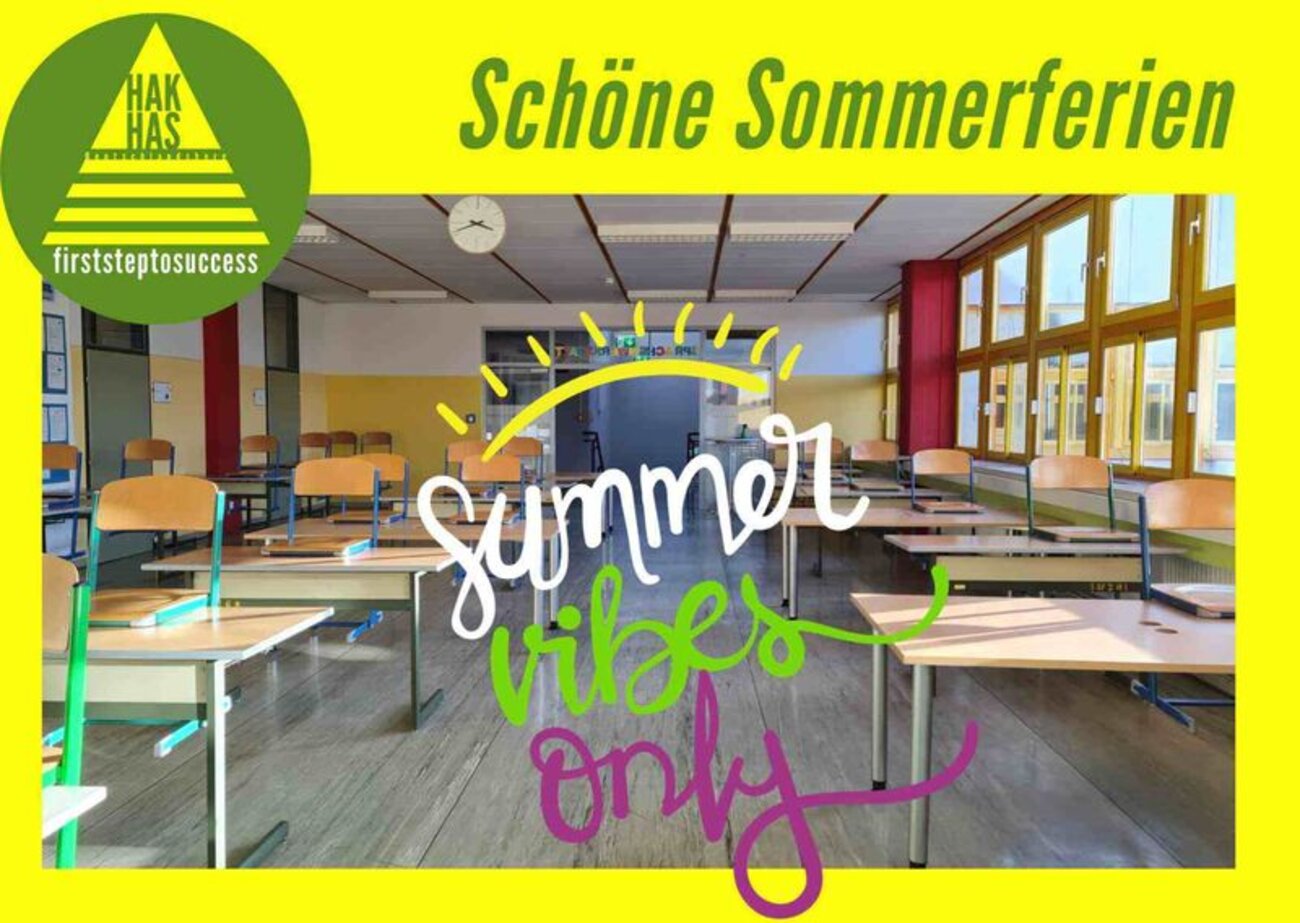 Schöne Sommerferien Die Schulgemeinschaft der BHAK/BHAS Deutschlandsberg wünscht schöne erholsame Ferien! Öffnungszeiten Sekretariat: 10.-14.07.2023 - 07:30 bis 12:00 Uhr Freitag, 04.08.2023 - 09:00-11:00 Uhr ab 04.09.2023 - 07:30 bis 12:00 Uhr Zurück
