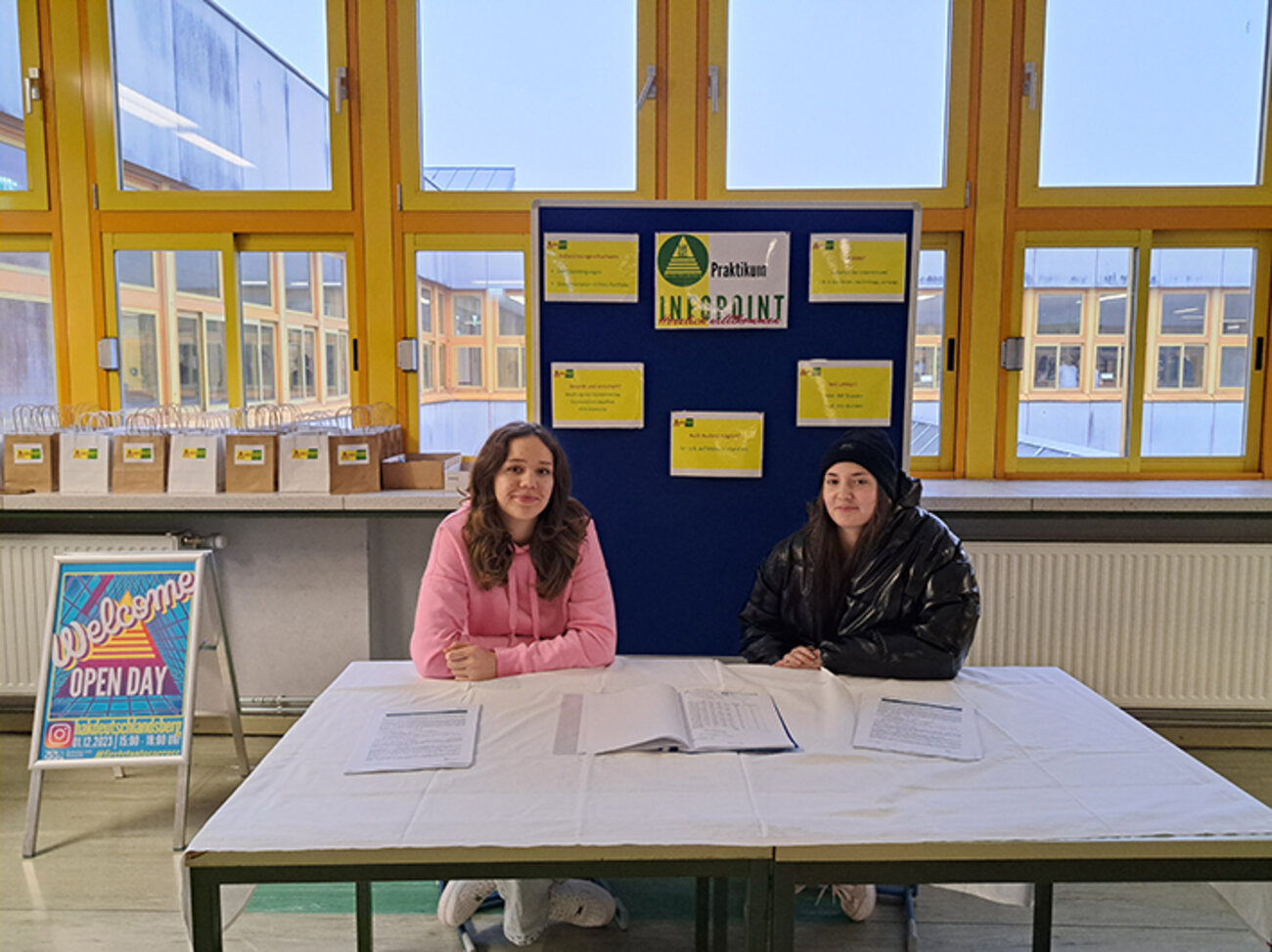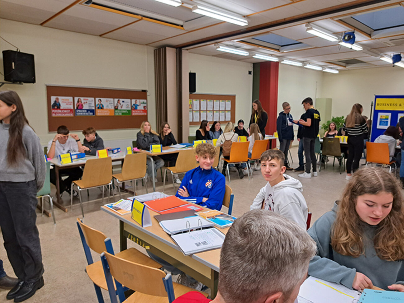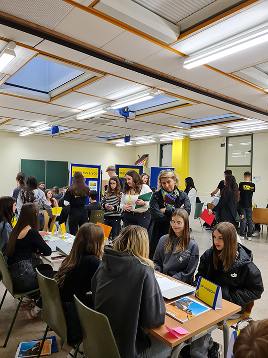 Diese Stunden wurden genutzt um mit Schüler:innen, Lehrer:innen und Direktorin zu sprechen und sich über Schulalltag, Berufschancen und vieles mehr zu informieren.