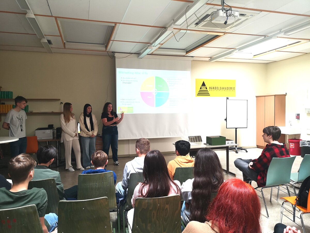 Workshop Entrepreneurship und Management Am 03. Mai 2024 fand ein Workshop zum Thema Entrepreneurship und Marketing für Schüler:innen der 3. Klasse der Mittelschule Deutschlandsberg statt. Unsere Schüler:innen aus der 2AK brachten ihnen diese Themen näher und in Teams wurde gemeinsam an Ideen gearbeitet. Ein toller Austausch und Impuls für mehr unternehmerisches Denken. Zurück