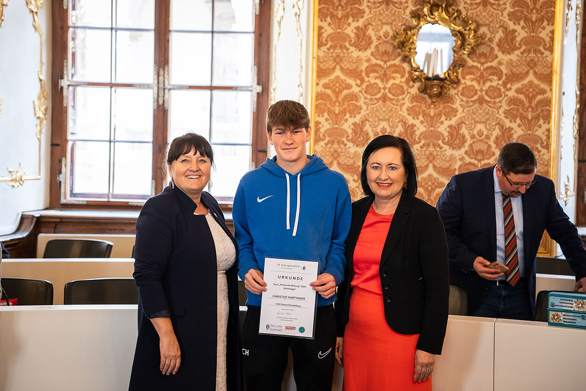 Nach einer Zwischenausscheidung im Landhaus kamen die drei Besten jedes Schultyps in die nächste Runde. Erfreulicherweise konnte sich Dominik Muchitsch (HAS) hierfür qualifizieren. Gemeinsam mit anderen Schüler:innen aus verschiedenen steirischen Schulen konnte er den 2. Platz erreichen und durfte sich über einen Geldpreis freuen.