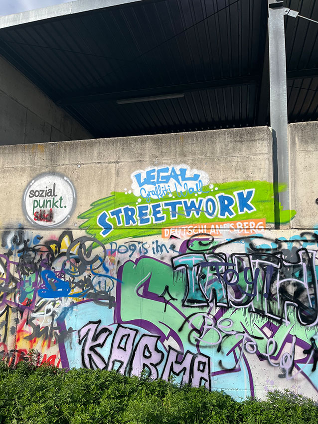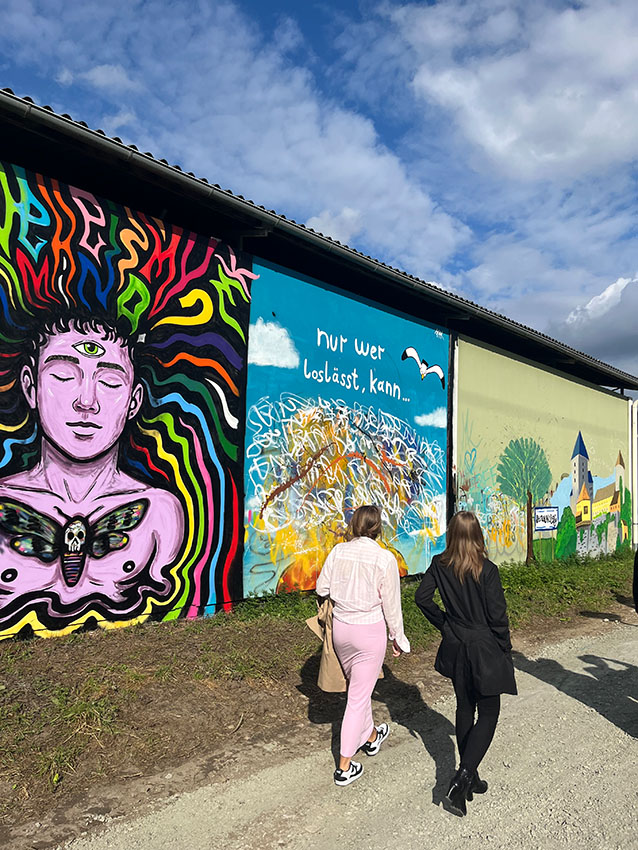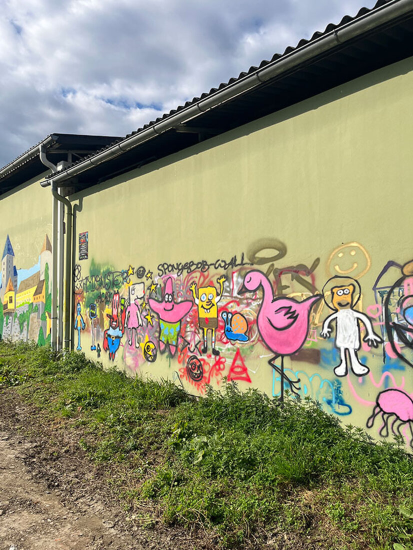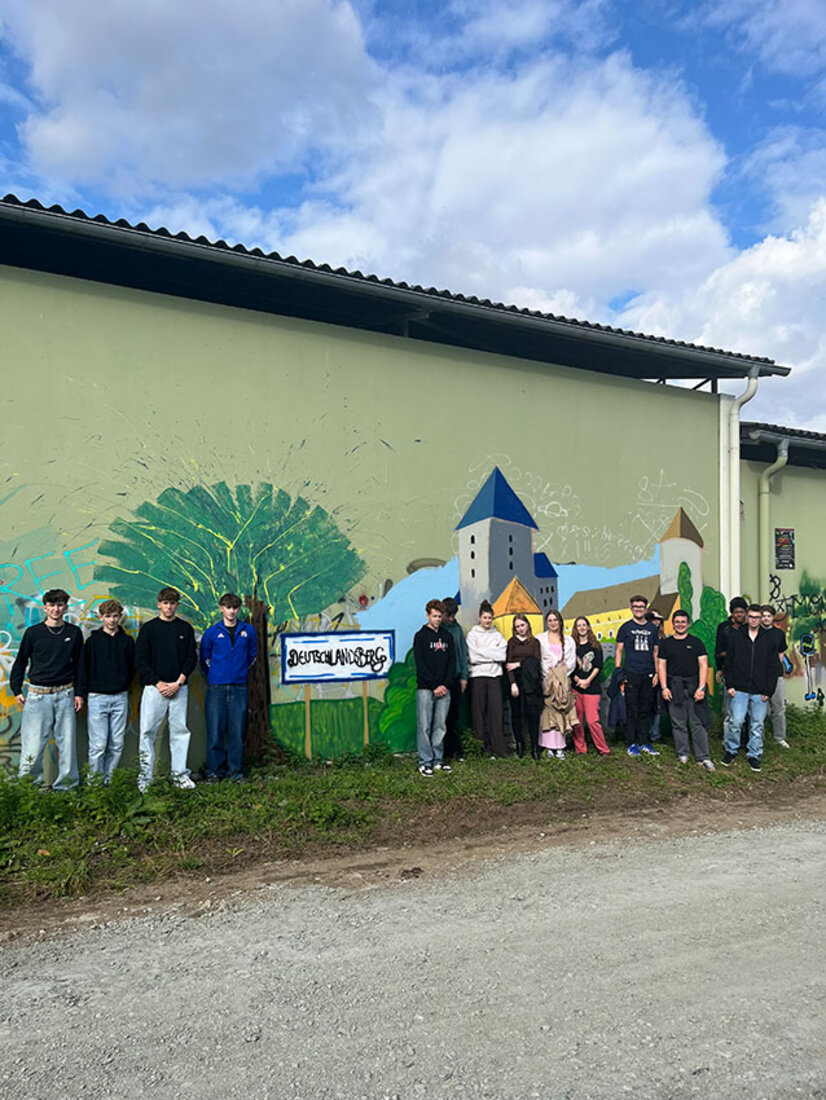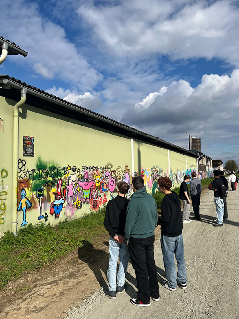 Die 3ABK Schüler:innen besuchten im Rahmen des Marketing und E-Business-Unterrichts gemeinsam die offizielle Graffiti-Wand der Stadt Deutschlandsberg, an der legal gesprayt werden darf. Dort ist Kreativität erlaubt und erwünscht – die Wände sollen Geschichten der Region erzählen.