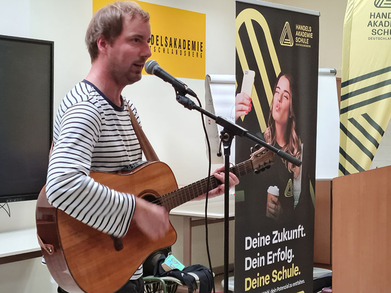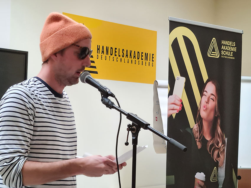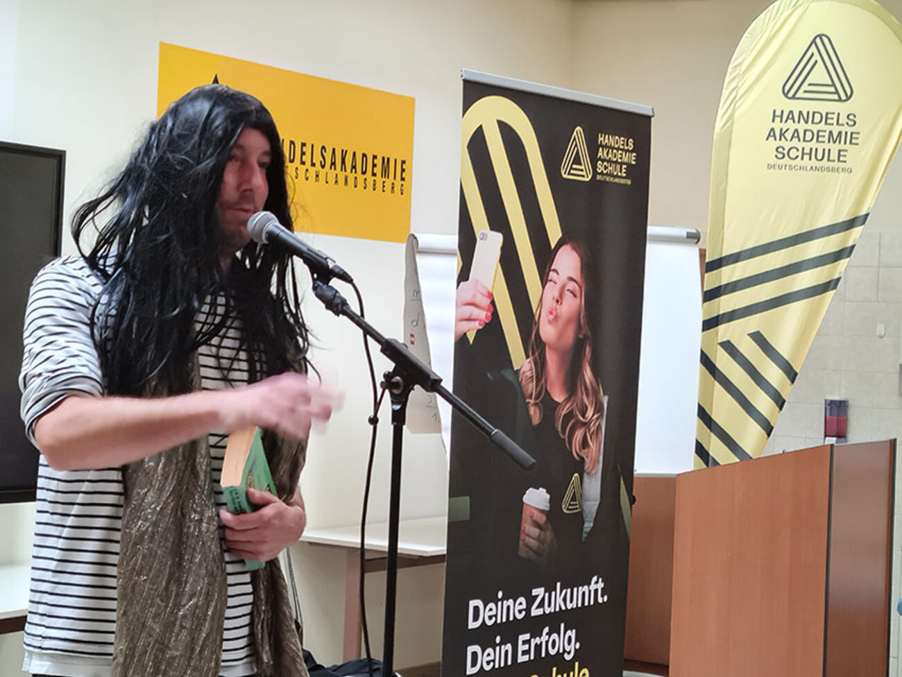 Back to HAK – Kabarett mit Dan Knopper Unser Absolvent Dan Knopper brachte sein Kabarett live auf die Bühne der HAK Deutschlandsberg. Mit scharfem Witz, pointierten Geschichten und jeder Menge Humor zeigte er unseren Schülerinnen und Schülern, wie man den Alltag mit einem Lachen nimmt. Zurück