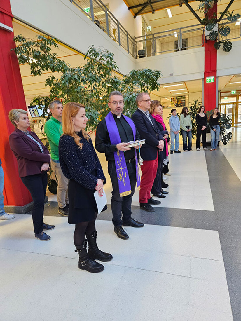 Der katholische Stadtpfarrer von Deutschlandsberg, Istvan Hollo, segnete die Adventkränze und die Menschen im Rahmen einer kleinen Feier, die von einem Musikensemble der HLW begleitet wurde.