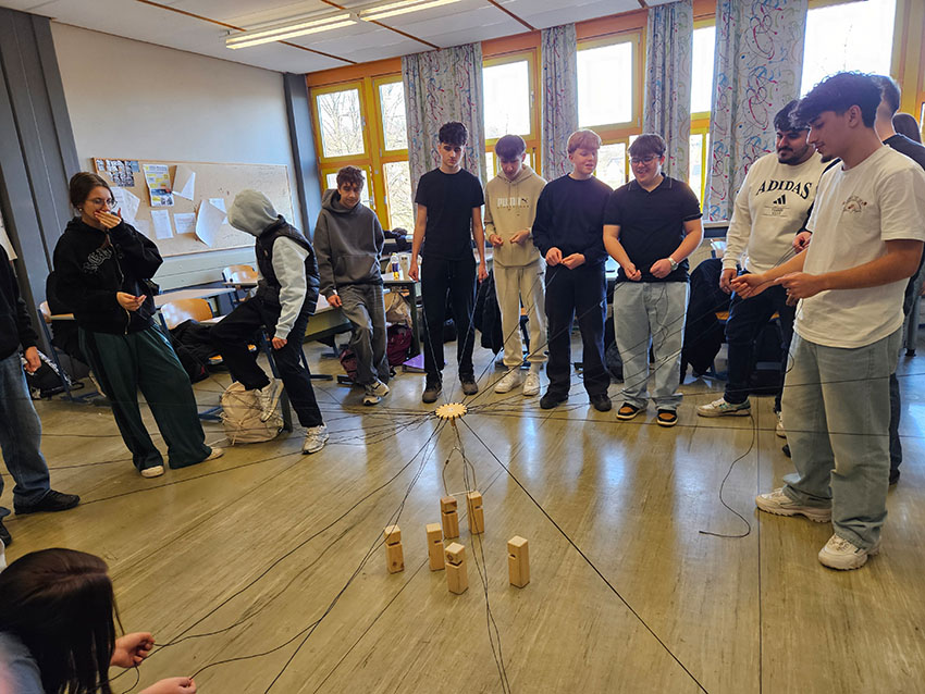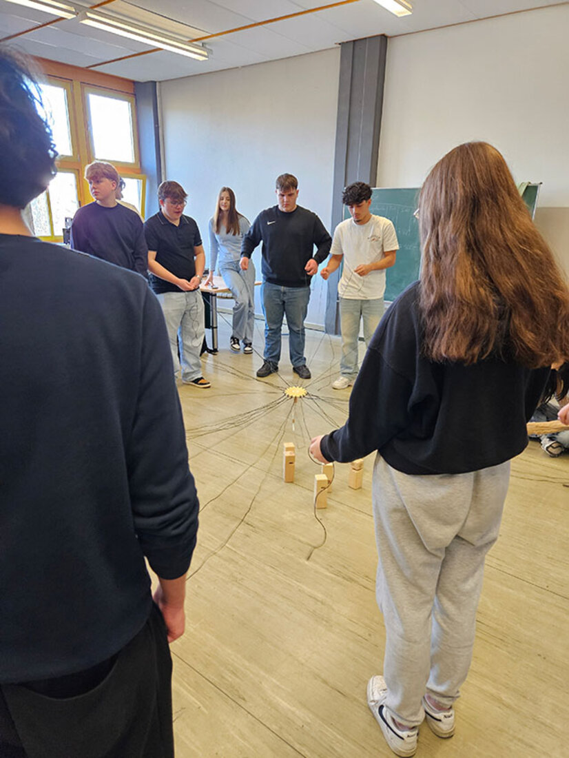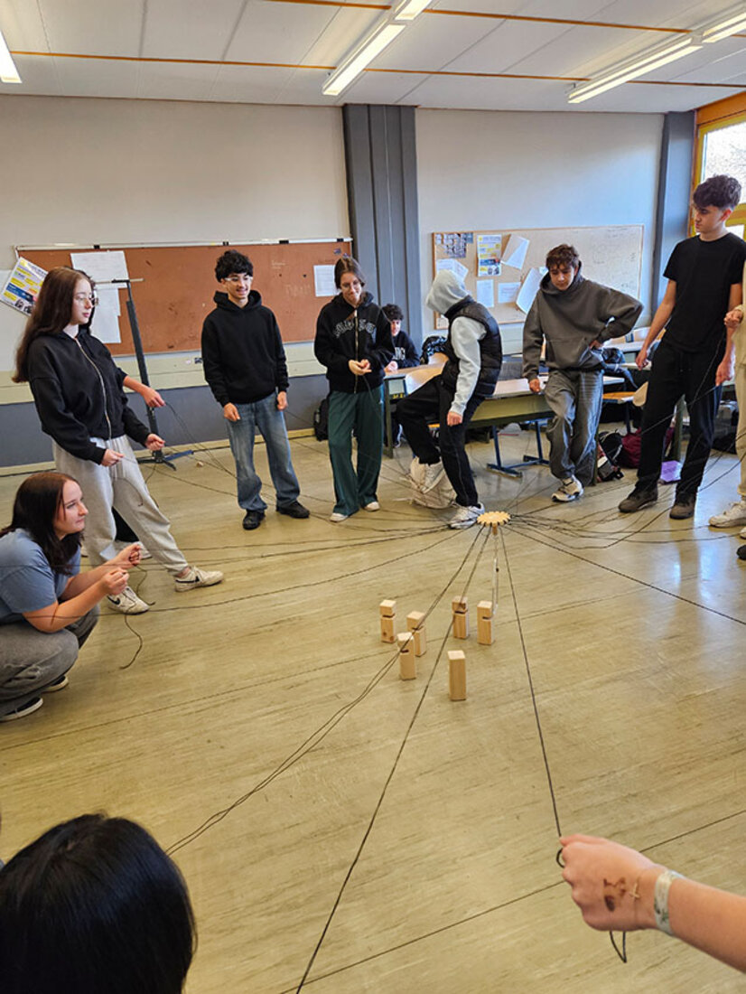 Teamarbeit mit dem Fröbelturm Die Peers der 2AS, Muhittin, Ahmad, Christin und Lennox führten mit der 1AS eine Übung zur Teamarbeit durch, nämlich den Fröbelturm. Die Aufgabe war es, gemeinsam einen Turm aus Holzquadern zu bauen. Die Schüler und Schülerinnen meisterten diese Herausforderung in kurzer Zeit. Die Klasse hatte viel Spaß dabei. Zurück