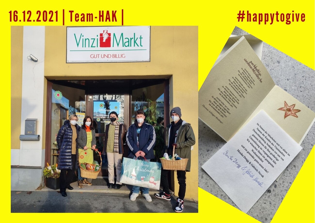 All diese Dinge sind vinzige Geschenke für all jene, denen es am Nötigsten fehlt. Thorsten: „Damit wollen wir den Vinzi-Laden in Deutschlandsberg unterstützen.“ Auch die Lehrer:innen der HAK Deutschlandsberg wichteln wieder für Vinzi. Der Korb im Konferenzzimmer ist ebenfalls bis obenhin gefüllt. Prof. M. Liebmann: „Freude bereiten ist ein wunderbares Weihnachtsgeschenk.“