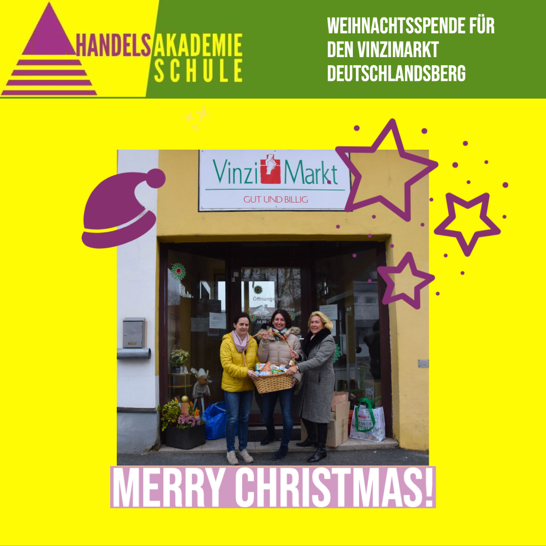 Wir haben im Kollegium Sachspenden gesammelt und diese am 22. Dezember dem Vinzi-Team Deutschlandsberg übergeben.