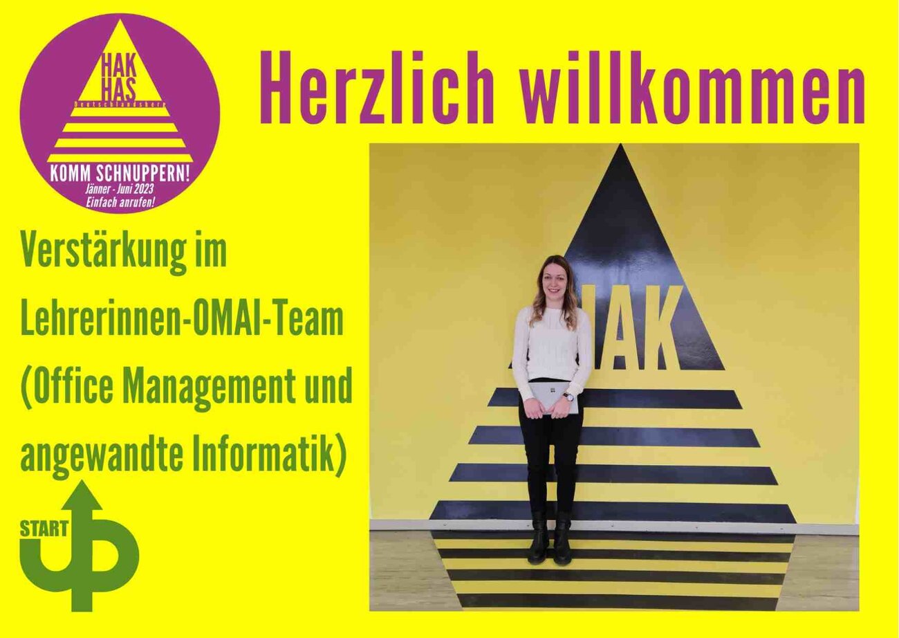 Neu im OMAI-Team Herzlich begrüßen wir unsere HAK Absolventin Michaela Koch, die im Rahmen ihrer Ausbildung an der Pädagogischen Hochschule voll Elan den OMAI Unterricht an der HAK.HAS Deutschlandsberg mitgestaltet. Zurück